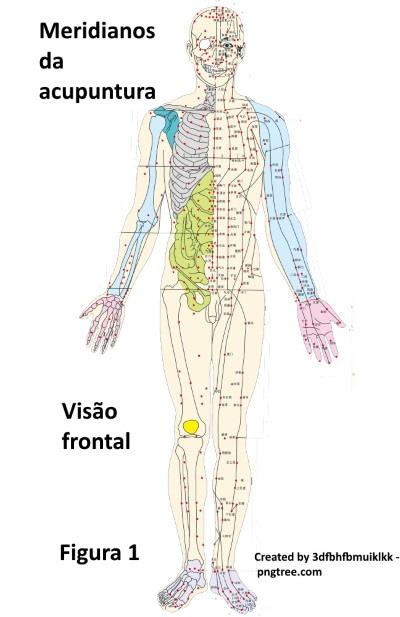 As sessões de acupuntura. Acupuntura é uma palavra que se origina das palavras latinas acum e punctum, as quais significam agulha e picada respectivamente. As agulhas são pequenas, descartáveis, filiformes, muito menores que as agulhas de injeção; a inserção das agulhas se faz em pontos específicos do corpo, localizados nos meridianos clássicos (figura 1) ou fora destes. A penetração da agulha é aliviada pelo uso de um tubo plastico, que permite a passagem rápida através da pele.