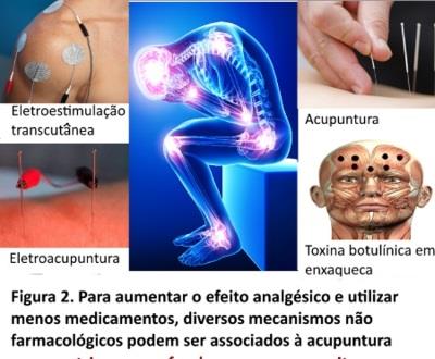 Acupuntura como adjuvante no tratamento da Dor. O tratamento da dor, é sempre diversificado, podendo na dependência de cada caso, envolver vários mecanismos, tais como farmacológico, físico (ultra som, calor), bloqueio anestésico, estimulação elétrica transcutânea, melhoria do sono, atividade física regular etc. Neste cenário é importante entender a acupuntura, como uma terapia adjuvante, ou seja, nunca isolada. Uma boa ilustração deste cenário, é o tratamento da enxaqueca: quando as crises se tornam muito frequentes, é necessário modificações na dieta, introduzir uma medicação profilática, reduzir o consumo de analgésicos, melhorar o sono, introduzir atividade física regular e fazer acupuntura. Na enxaqueca fica mais fácil entender que se não empregamos uma abordagem diversificada no tratamento da dor, ou caso a acupuntura seja o único tratamento, as chances de fracasso aumentam sobremaneira, uma vez que não tratamos os mecanismos básicos da dor como o abuso de analgésico, o uso do álcool, estresse insônia etc.